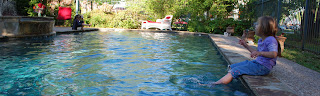 So we went to the pool so they could stick their feet and and rinse off. They started at the hot tub since the fountain was on and then sat on the edge of the pool. Walle and Busa wanted to join us since there wasn't any puddles that they could run into.